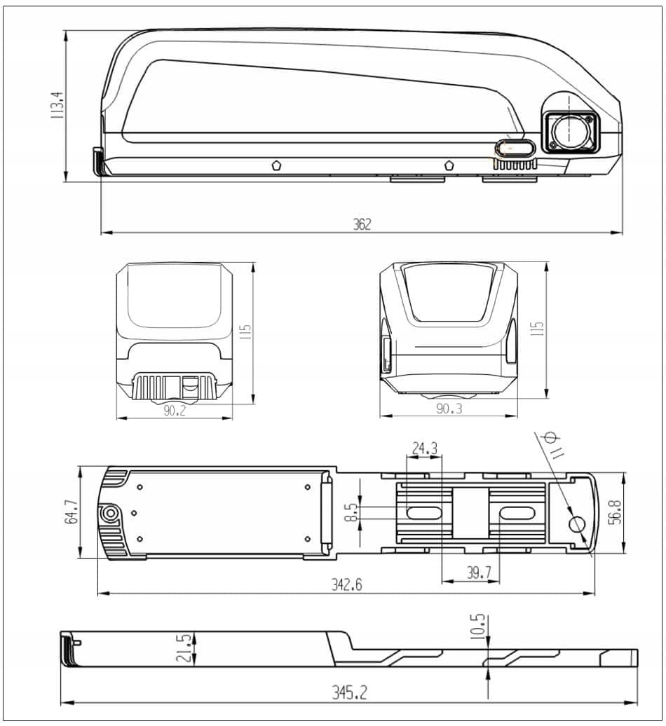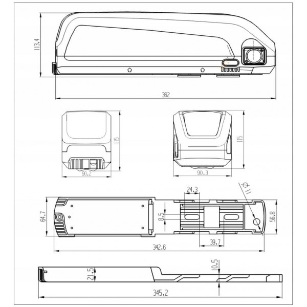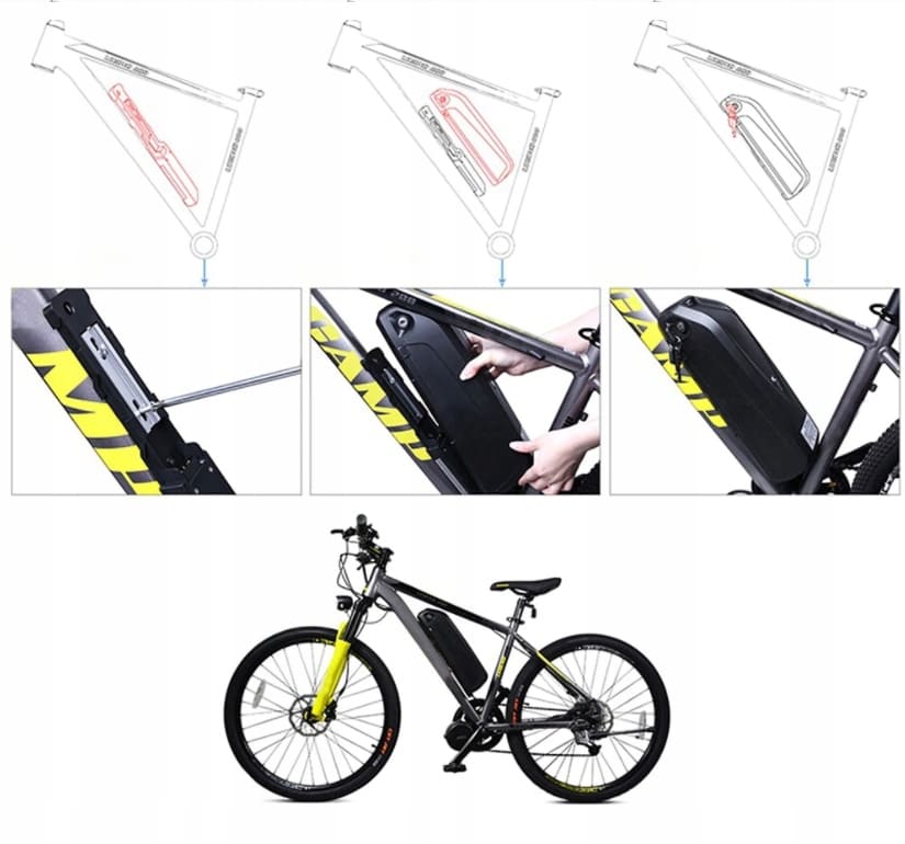 Bateria jest umieszczona w specjalnym pojemniku, który nie tylko chroni ją przed czynnikami zewnętrznymi lub przypadkowym uszkodzeniem, ale także pozwala na jej szybki montaż w rowerze. Wystarczy wsunąć baterię w szynę, którą wcześniej zamontowano w ramie.