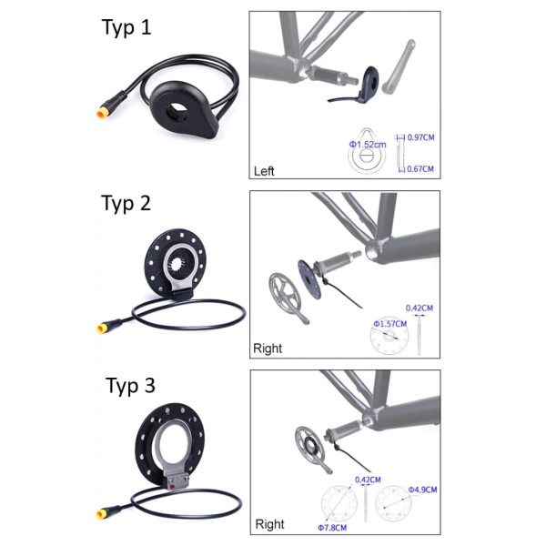 Czujnik zazwyczaj stosuje się, gdy oryginalne klamki hamulcowe są zintegrowane z manetkami zmiany biegów w rowerze lub w przypadku hamulców hydraulicznych. Elektroniczny czujnik hamulca zakładamy na klamkę hamulcową i momencie hamowania rączka klamki się przesuwa, co wykrywa czujnik hallotronowy i rozłącza w ułamku sekundy silnik.