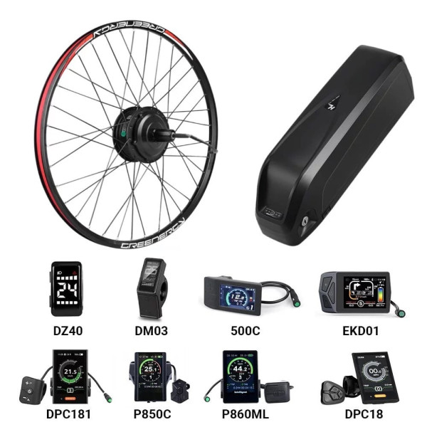 Kompletny zestaw z kołem na wybór: "14", "16", "18", "20", 26", "27" 27,5", "28", "29" o mocy 500W z baterią i ładowarką, który pozwoli ci w łatwy i szybki sposób zamienić swój dotychczasowy rower w e-bike.